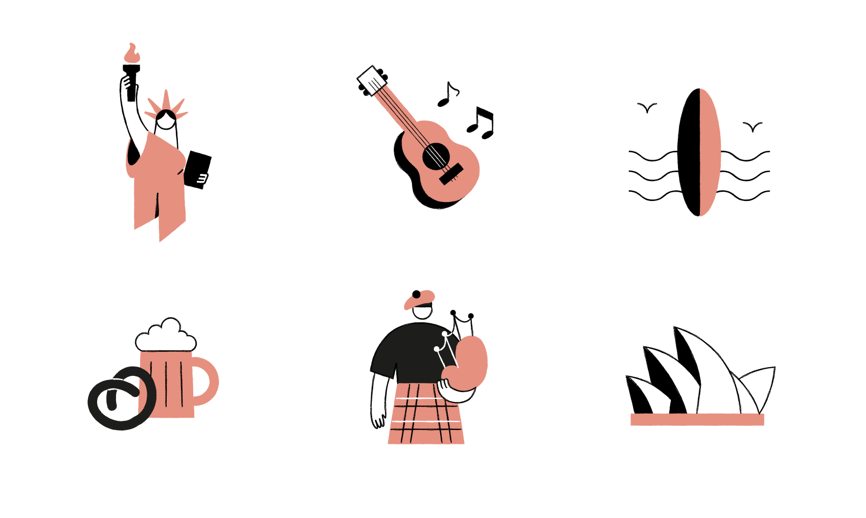 Ticket Tailor is an independent ticket platform for events raging from conferences to concerts and festivals. I was tasking with creating icon illustrations for different locations that the website offers tickets in.