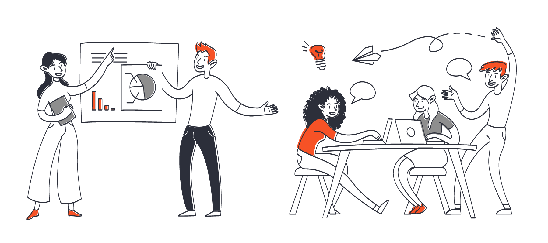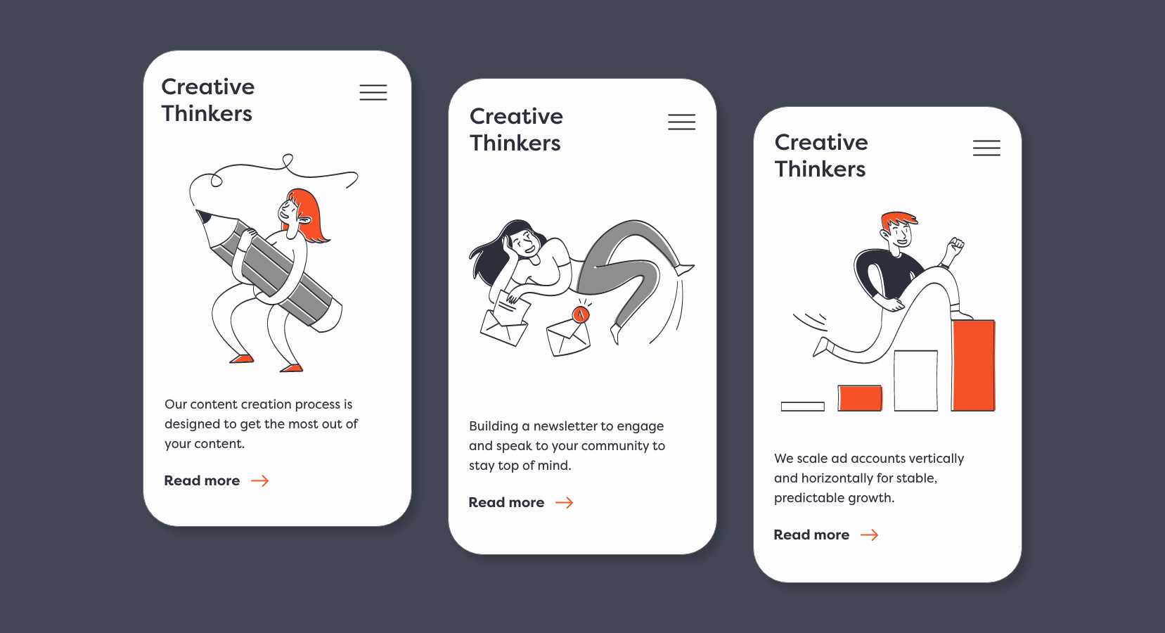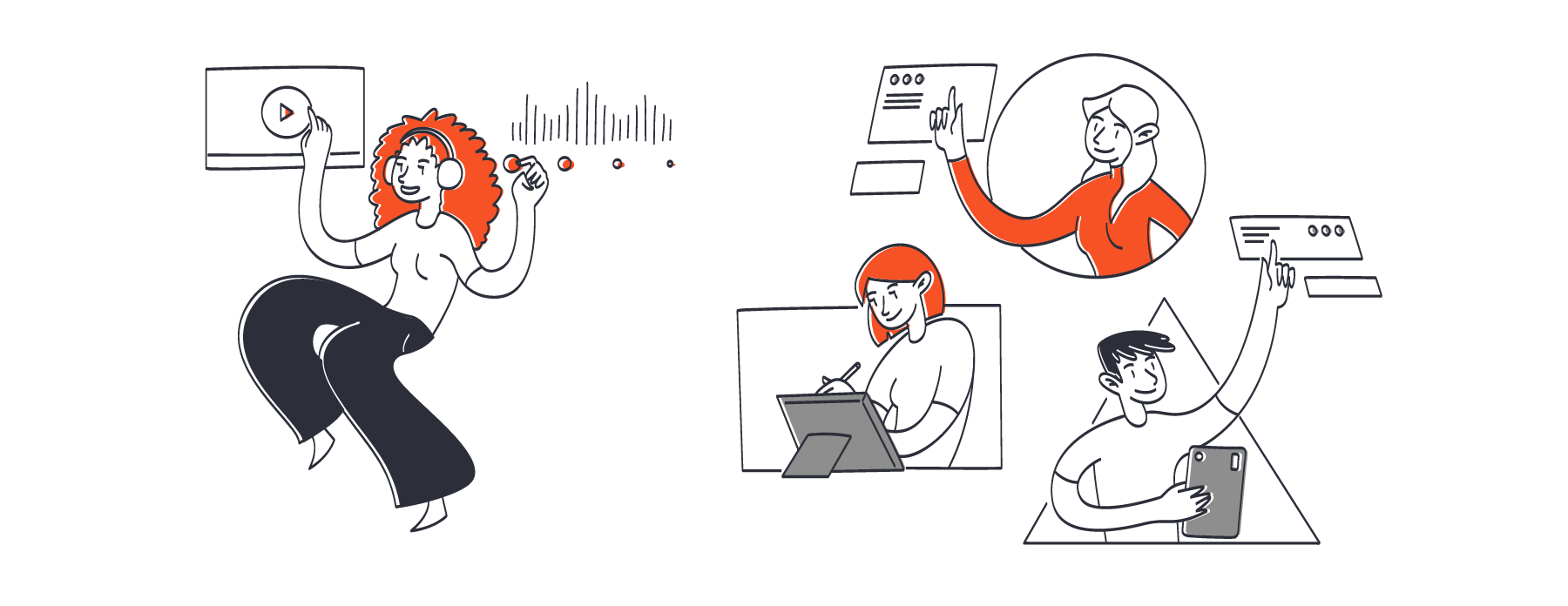 12 editable vector illustrations with the main themes of creativity, team work, content creation and online marketing. Once you purchase this set, you have the full rights to the illustrations.